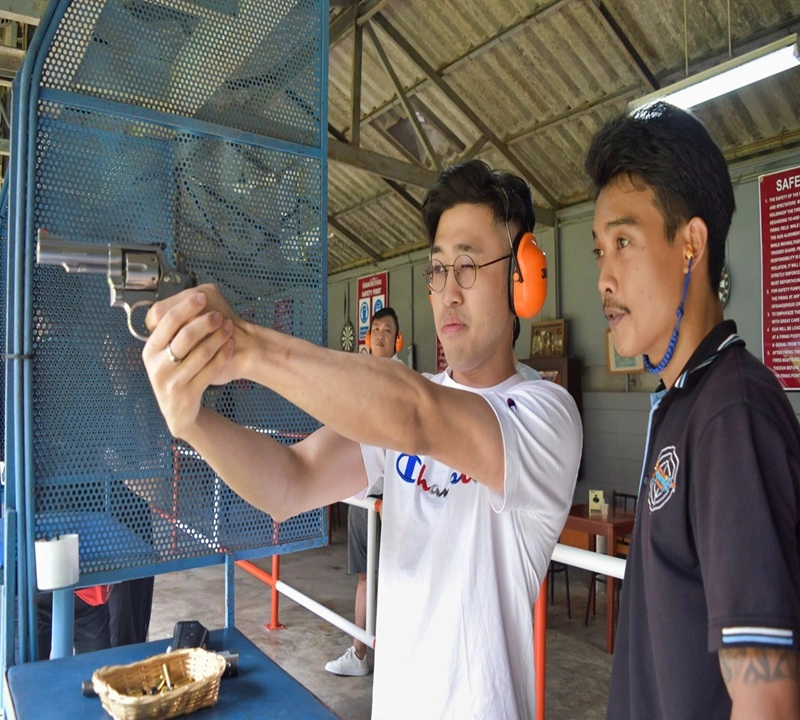 At Pattaya Shooting Park, you can choose from a variety of firearms, including .22 calibre handguns, .38 revolvers, 9mm pistols, and shotguns. Each weapon offers a unique shooting experience, catering to different preferences and skill levels.